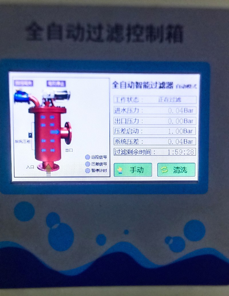手動控製:將操作麵板上的手動/自動選擇開關撥到手動位置,過濾器進行排汙。
